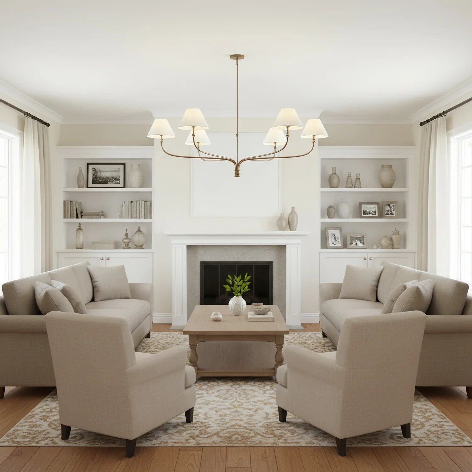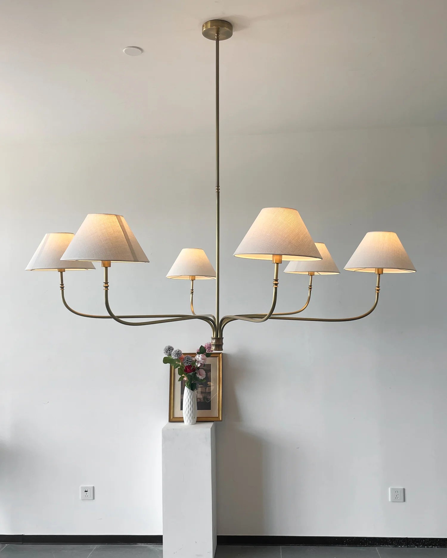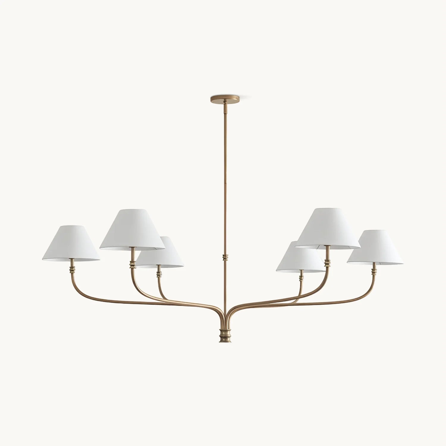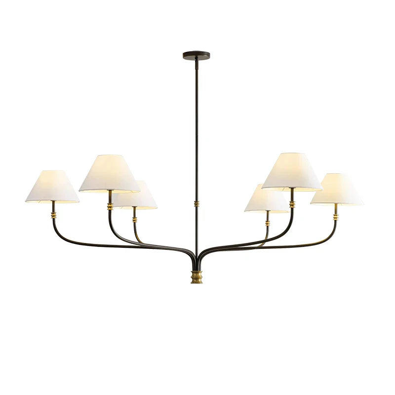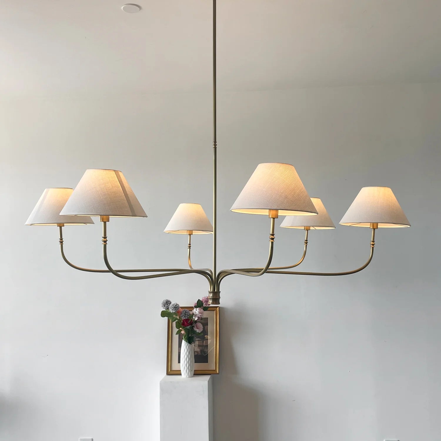 The Collins Modern Metal Chandelier pairs a sleek black metal frame with soft white fabric shades, creating a timeless blend of bold contrast and refined simplicity. With clean lines and understated luxury, it fits seamlessly into both contemporary and transitional interiors. Perfect for living rooms, dining areas, or bedrooms, this chandelier offers a versatile, stylish centerpiece with everyday elegance. Adjustable Rods: 15cm, 30cm, 50cm segments for custom height Gold Accents: Elegant clasp-style connection details Curved Arms: Smooth, balanced silhouette Black Frame & Fabric Shades: Classic contrast with soft glow