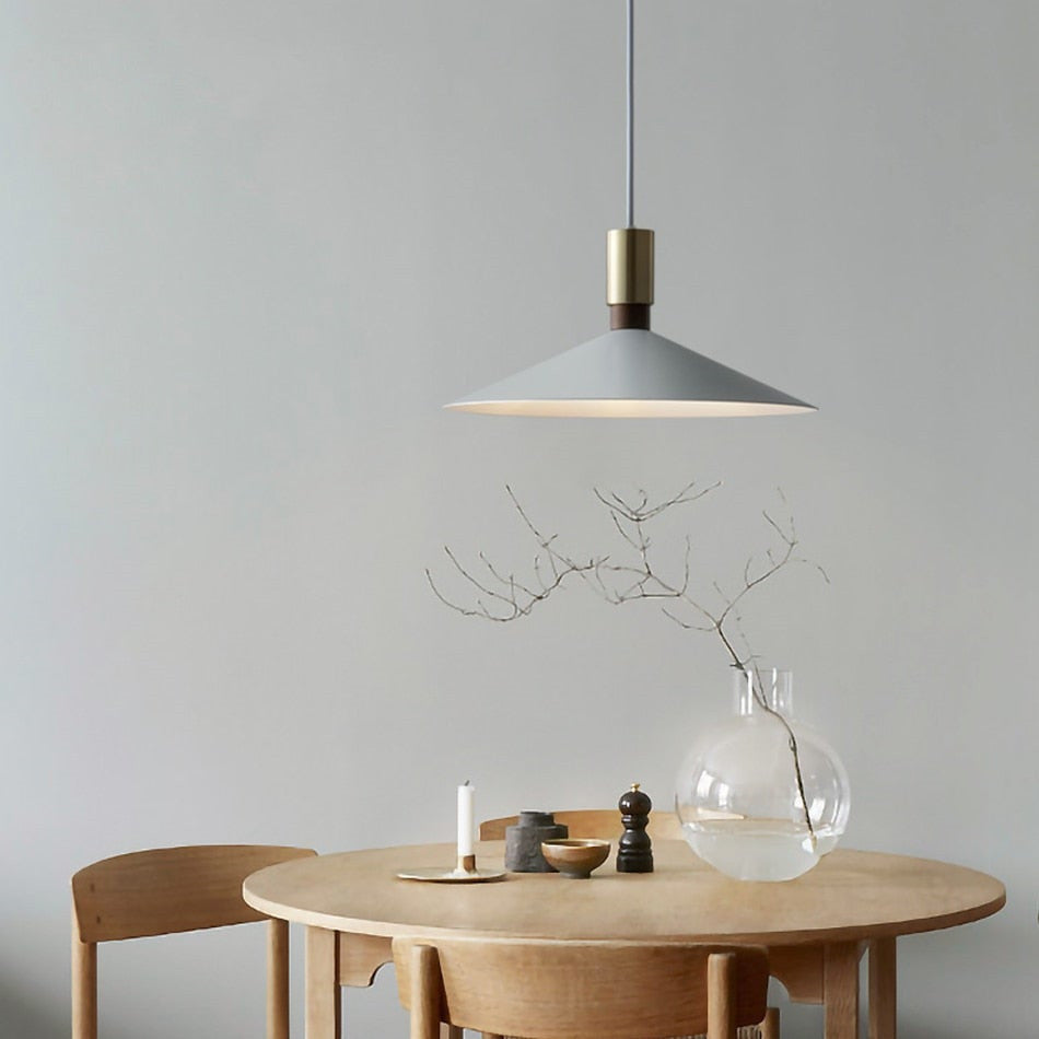 Unsere Betty-Kollektion bietet einen individuell anpassbaren Stil mit Eisenschirmen in mattem Weiß oder Schwarz und glänzend weißen Innenräumen. Mit seinen markanten geometrischen Details und dekorativen Fassungskappen ist diese höhenverstellbare kegelförmige Pendelleuchte perfekt für Küchen, Bars oder Nachttische. Entworfen von Gabyberg für moderne Flexibilität und Funktionalität.