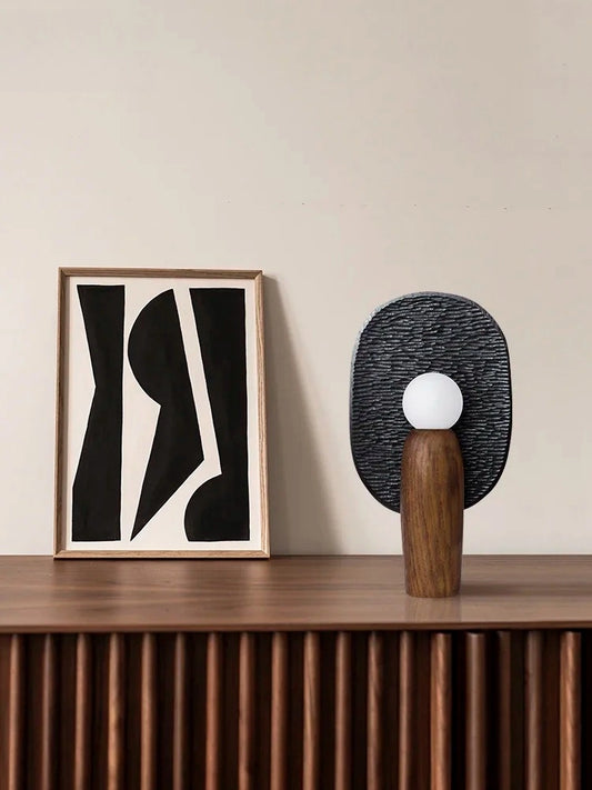 Japanese Zen Wood and Glass Table Lamp