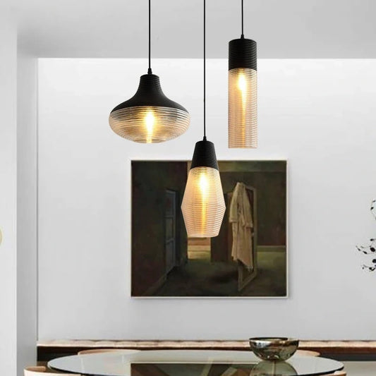 Ribbed Amber Glass Kitchen Island Pendant Light
