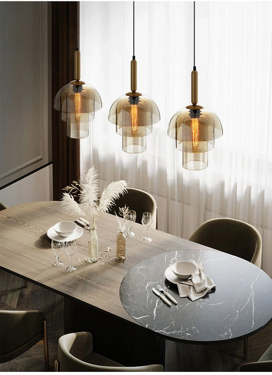 Nordic Designer Amber Glass LED Pendant light for Kitchen, Dimmable