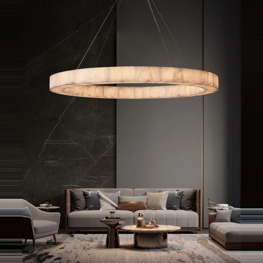 Minimalist Multi-Tier Ring Alabaster Chandelier