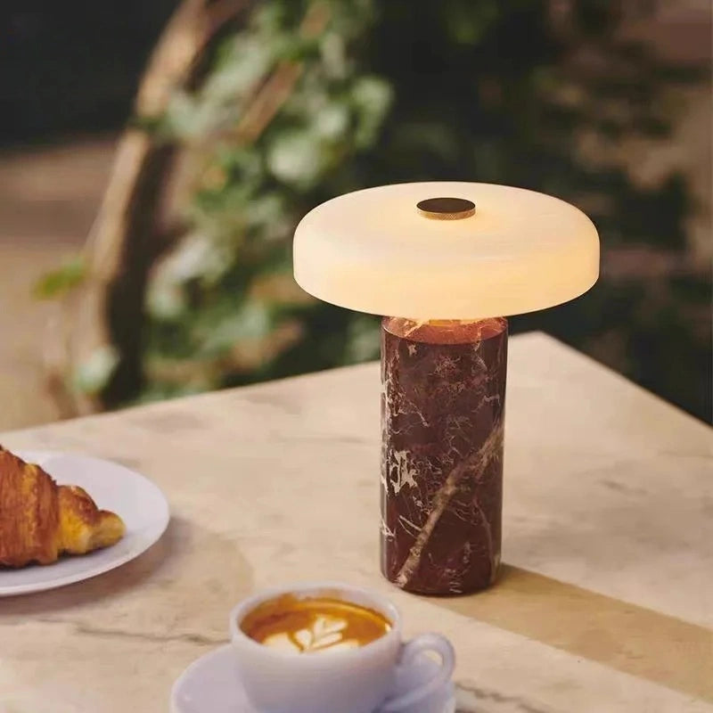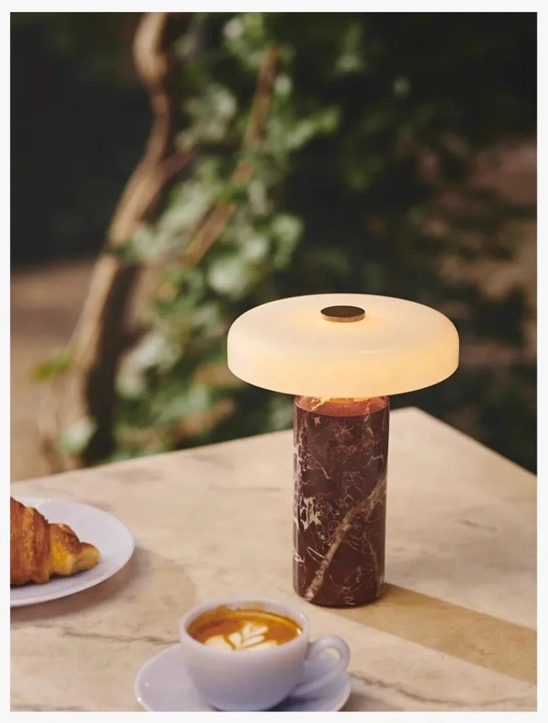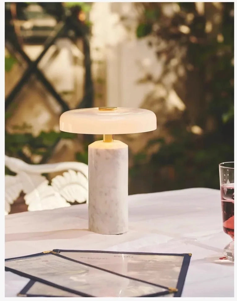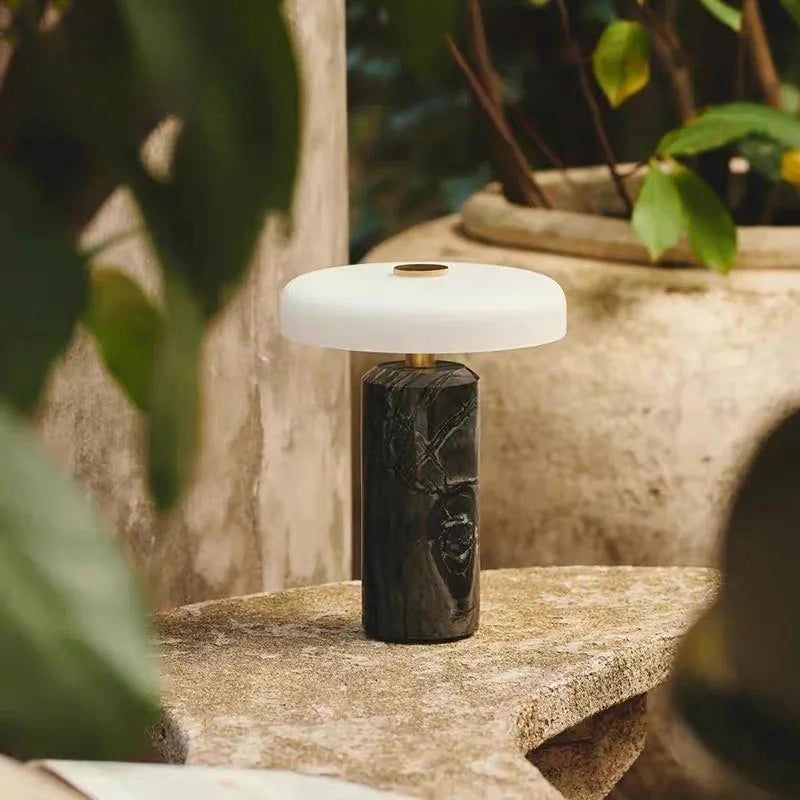 A sleek, portable table lamp featuring a solid marble base and frosted glass shade. Rechargeable and touch-controlled from the top, it delivers soft, ambient light with a refined, modern feelāideal for nightstands, shelves, or on-the-go use.
