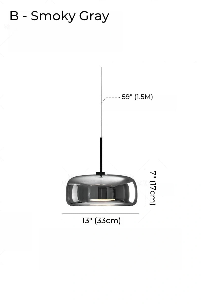 This Nordic-style pendant features a smooth amber or smoky gray glass shade with built-in 12W LED lighting. The integrated metal LED unit extends through the glass via a sleek rod to the top canopy. Available in two sizes—10"×9" and 13"×7"—this design is perfect for dining rooms or kitchen islands. Nordic Style: Clear, Amber or smoky gray glass shade Built-in LED: 12W integrated for bright, efficient light Size Options: 10"×9" or 13"×7" to fit your space Versatile Use: Ideal for dining rooms and kitchen islands